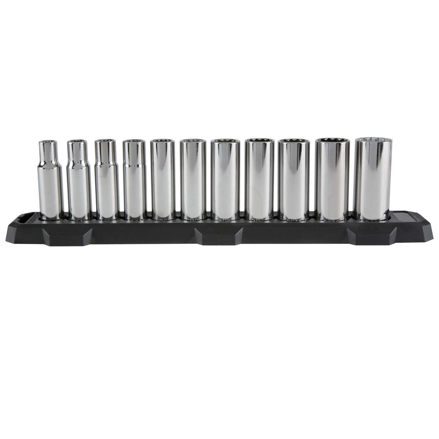 | What's Included | (11) 1/2-in. Drive Deep 12 PT Sockets SAE – 3/8-in. , 7/16-in. , 1/2-in. , 9/16-in. , 5/8-in. , 11/16-in. , 3/4-in. , 13/16-in. , 7/8-in. , 15/16-in. , 1-in. |