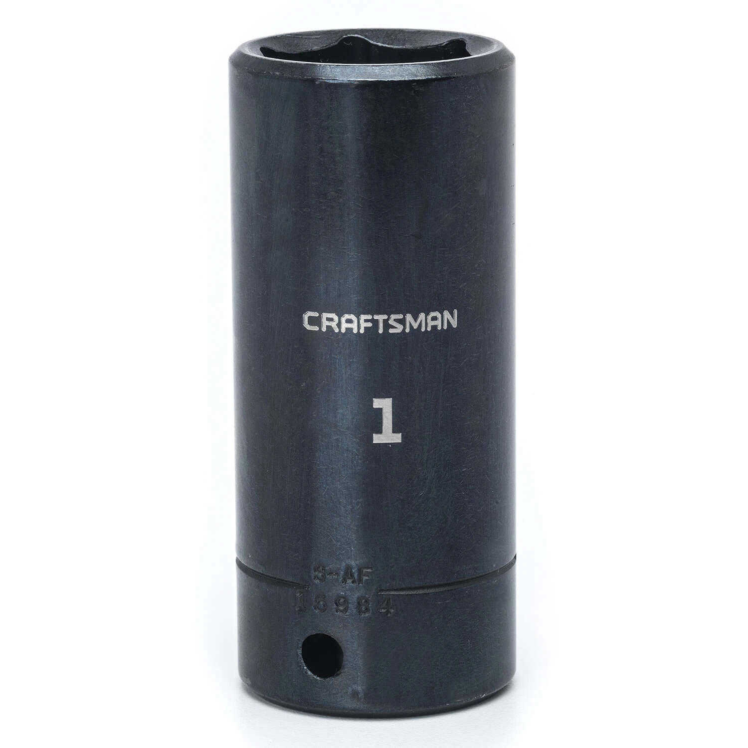 1/2-in. Drive 1-in. SAE Deep Impact Socket is engineered and constructed to endure high torque application with impact wrenches. This impact socket is specially designed to engage with the flats of fasteners to prevent rounding so it’s time to turn up the torque and turn tough jobs into easy ones. CORROSION RESISTANT: Black Oxide Finish INCREASED TORQUE: 6 Point Socket with fastener QUICK SIZE IDENTIFICATION: Large Markings Meets or Exceeds ASME Specifications