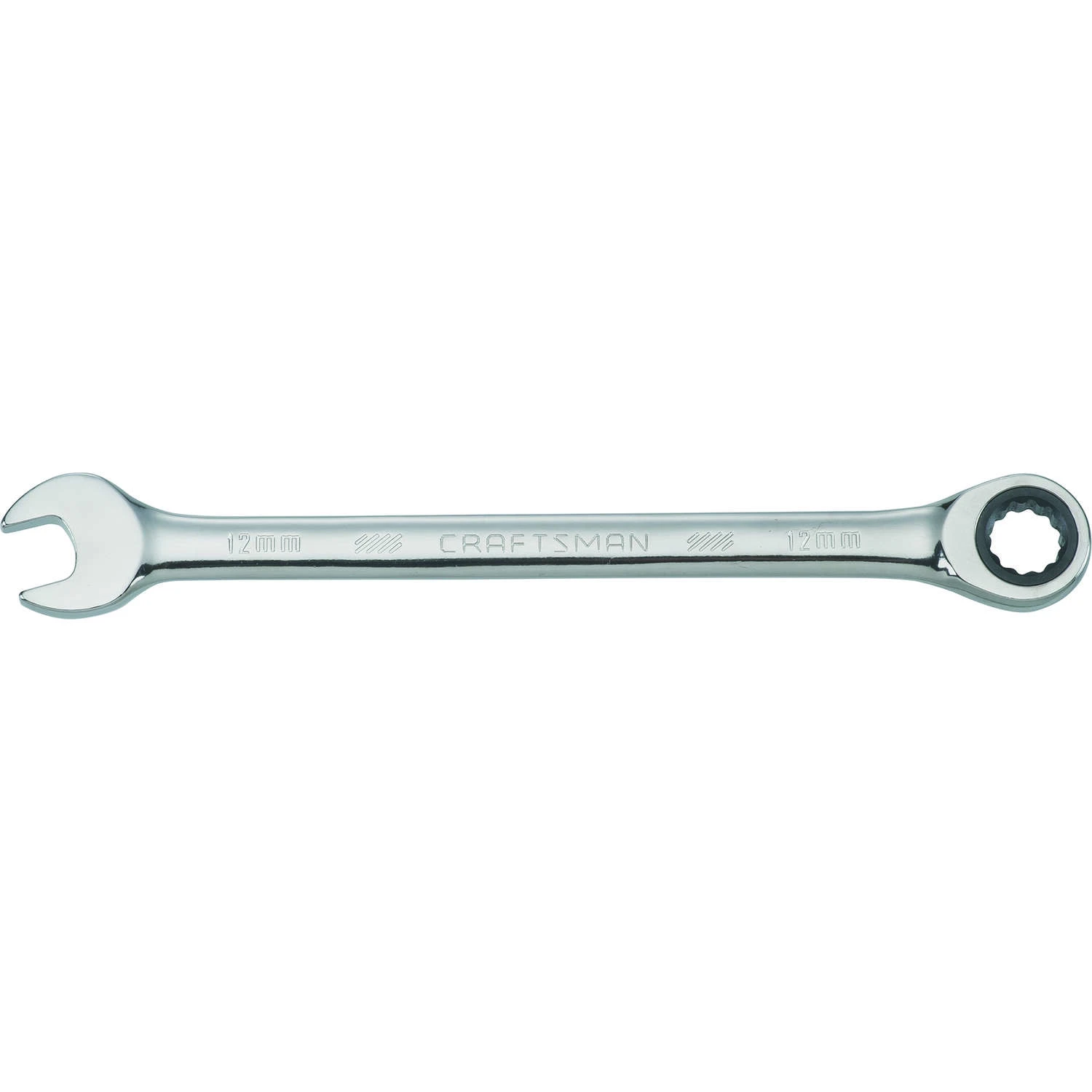 12mm 72-Tooth 12 Point Metric Ratcheting Wrench has a corrosion resistant chrome finish providing extra wear and tear coverage while adding hardness and durability allowing your wrench to last longer. Craftsman® wrenches meet or exceed ASME specifications. 15 deg. box end offset for additional knuckle clearance Large markings for quick combination wrench identification 12 point box end for quick engagement with fastener 72-Tooth ratcheting box end for access in tight spaces Common applications includes automotive mechanical and home repair