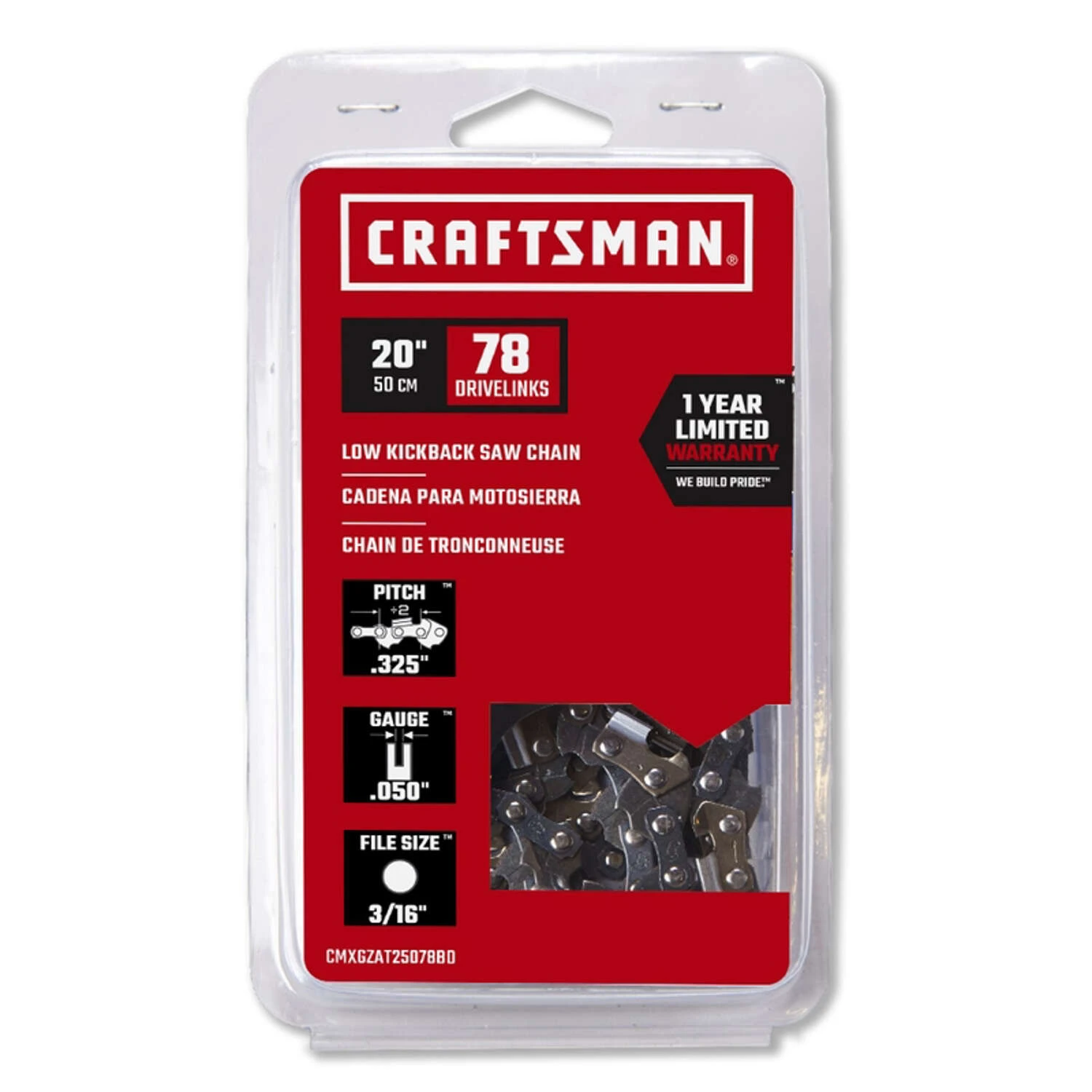 | Search Field | Craftsman 20 in. Low Kickback Saw Chain 78 links Outdoor Power Equipment Chainsaw Bars and Chains CHAIN SAWS CHAIN SAW ACCESSORIES ARROWHEAD ENGINEERED PRODUCTS Craftsman 20__rexuom__in 20__rexuom__inch |