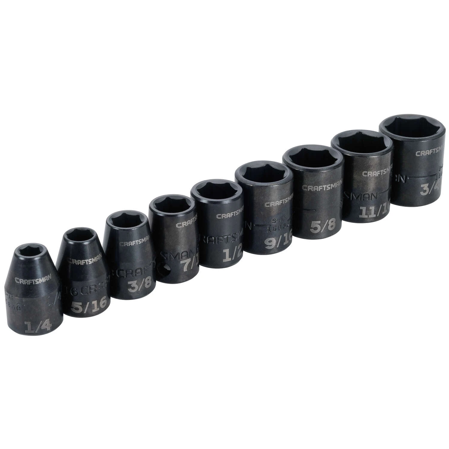 | What's Included | (9) 3/8-in. Drive Shallow Impact Sockets SAE – 1/4-in. , 5/16-in. , 3/8-in. , 7/16-in. , 1/2-in. , 9/16-in. , 5/8-in. , 11/16-in. , 3/4-in. |