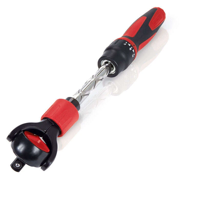 The 72-tooth Mach series 3/8 inch drive ratchet is built for speed turning sockets 16X’s times more efficient than a regular ratchet with a swing arch of 60 degree. The Mach series 3/8 inch drive ratchet combines the speed of a push twisting screwdriver, a ratcheting screwdriver and the higher torque and access of a ratchet assembled together into one tool. The Mach series ratchet head pivots 180 degree for better access for hard to reach fasteners and for higher torque fastening applications. Helix drive shaft locks into position transforming the Mach series ratchet driver into a standard socket wrench. Also reverses direction at the flip of a switch with forward and reverse indicators marked on the handle. 72 teeth give you a 50 degree swing arc Helix drive shaft helps the ratchet transform into a socket wrench Reverse switch lets you change the direction with just your thumb