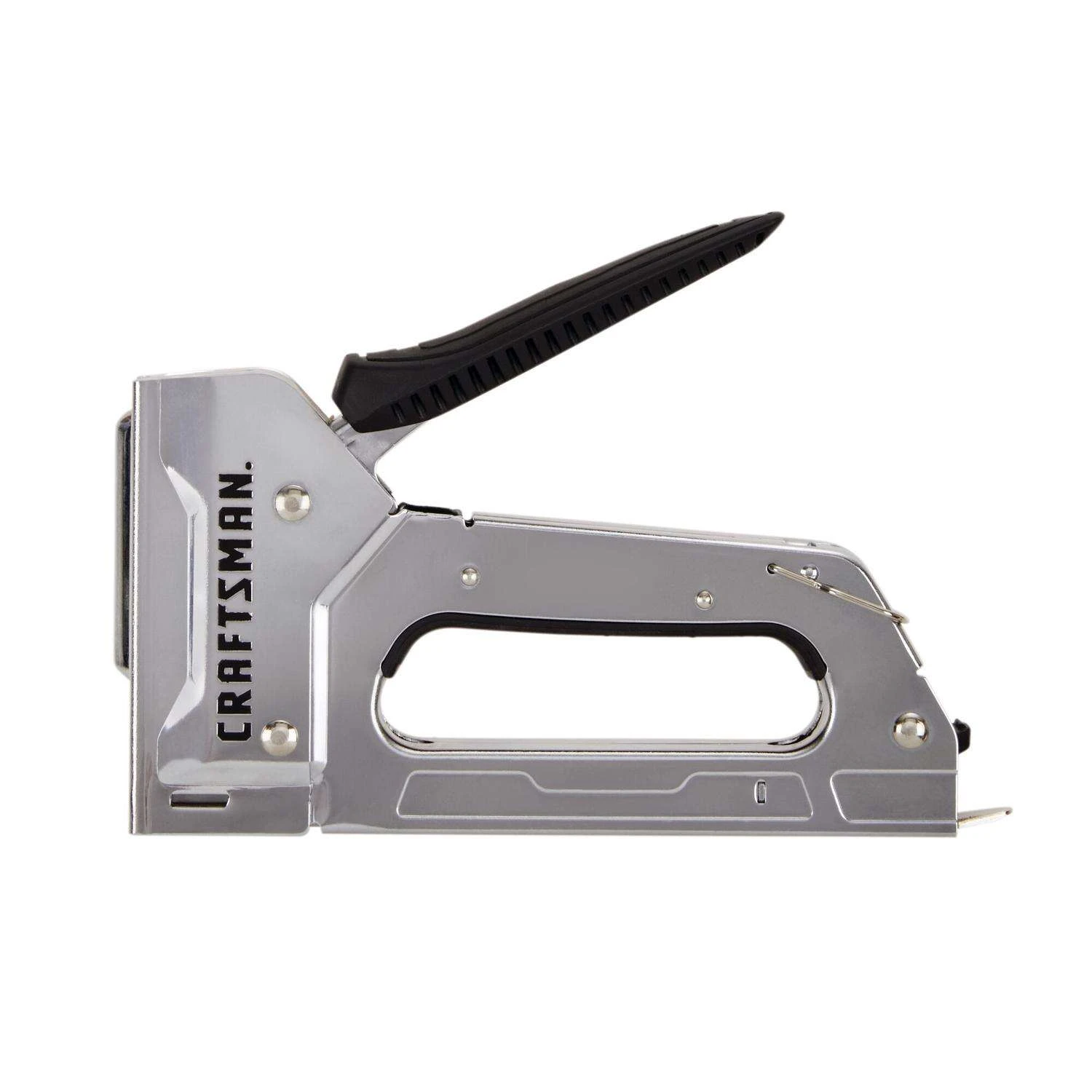 The Craftsman light-duty steel stapler features chrome-plated steel construction for durability. It features a bottom staple load design for easy staple loading and clearing and an integrated staple remover. Use with carpet, rugs, upholstery or wood High quality material Locks for compact storage