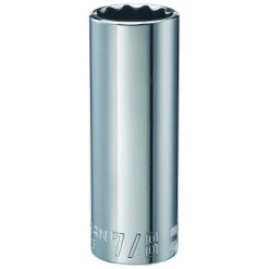 1/2-in. Drive 7/8-in. 12 Point SAE Deep Socket features a deep well construction and internal construction designed to engage with the flats of fasteners. This allows for the user to reach those hard to reach fasteners and torque without the fear of stripping a bolt. CORROSION RESISTANCE: Full Polish Chrome Finish QUICK ENGAGEMENT: 12 Point Socket with Fastener QUICK SIZE IDENTIFICATION: Large Markings Meets or Exceeds ASME Specifications