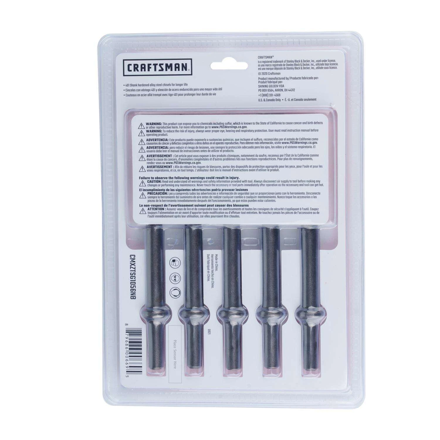 | What's Included | (1) Flat chisel, (1) tapered punch, (1) spot weld splitter, (1) single blade panel cutter and (1) edging chisel |