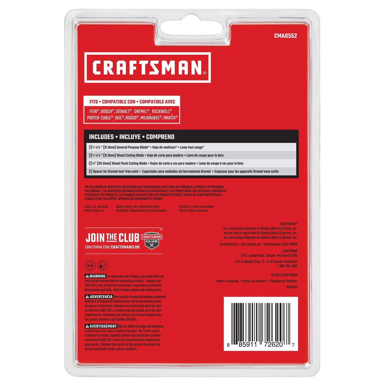 Craftsman oscillating blades are optimized to cut through wood, drywall, wood with nails, and metal. Universal fitment design allows for quick, tool-free blade change. Tapered blade shape for removing chips and maneuverability while cutting High quality material Long lasting