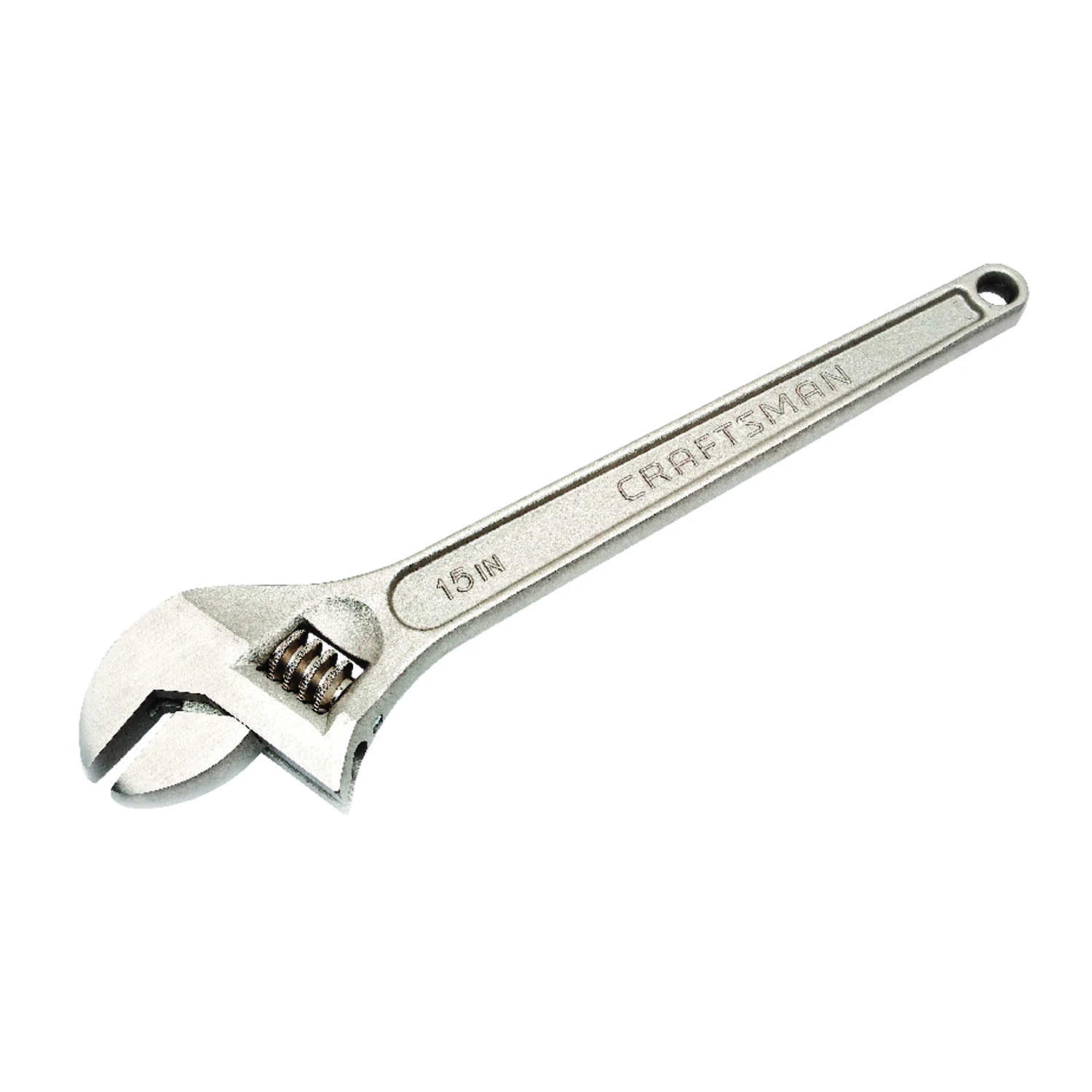 Adjustable wrenches are a must-have for any toolbox. These adjustable wrenches have an all steel I-beam construction for durability and comfort when applying torque to break those stubborn bolts free. Craftsman adjustable wrenches come in sizes ranging from 6-in to 24-in to get the job done in a variety of applications. Versatility – wide opening jaws for added versatility Chrome finish for corrosion resistance Convenience – metric and sae scale for easy gauging of work piece size Meets or exceeds ASME specifications Automotive mechanical and home repair applications