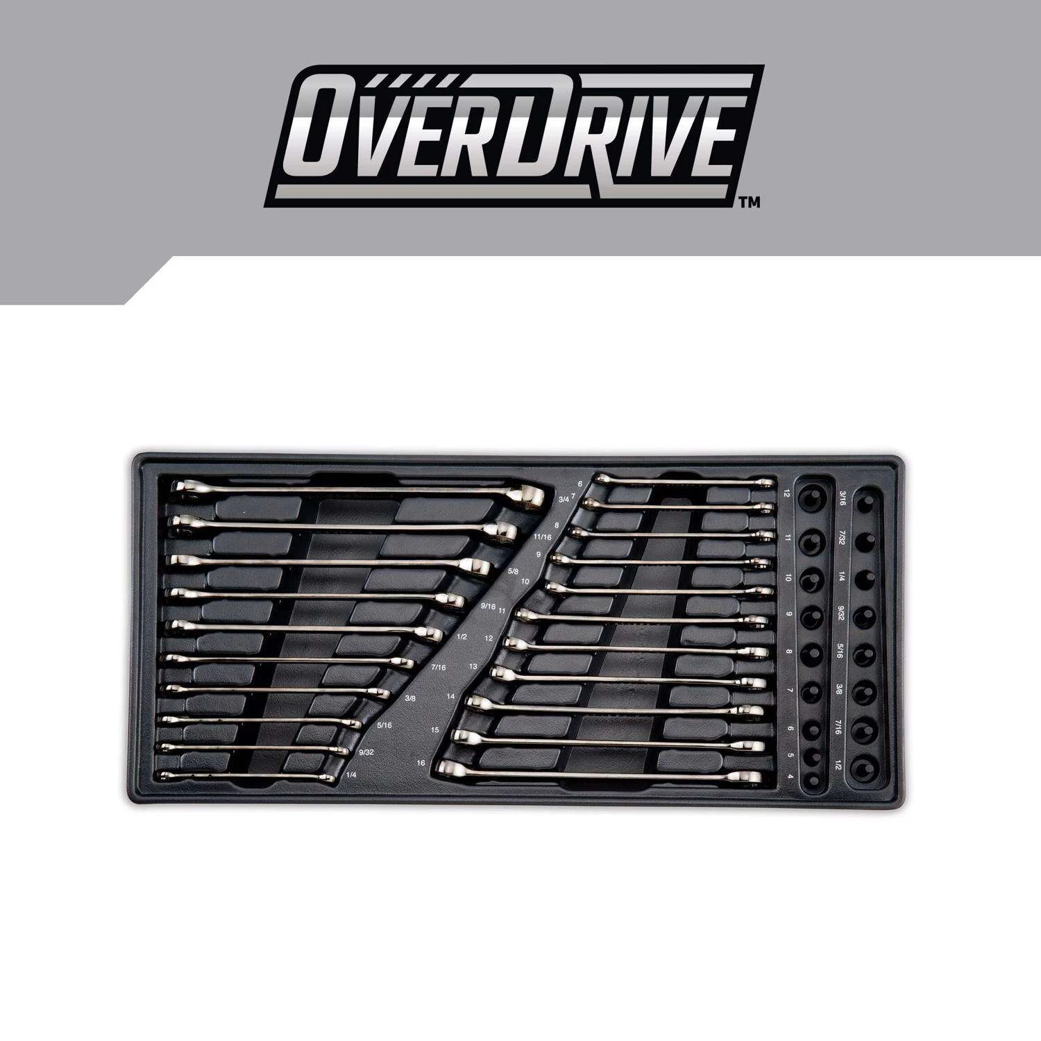 Take turns in tight spots and finish your project with pride. This versatile OVERDRIVE Mechanics Tool Set offers 284 pieces including sockets, wrenches, ratchets, and more. Featuring a sleek finish, these tools provide the leverage you need in the garage and beyond. TURNS IN TIGHT SPOTS – Access confined areas with a high-count 180-tooth ratchet designed to minimize arc swing. TIGHT TORQUE TECHNOLOGY – Complete difficult jobs with sockets designed to remove fasteners rounded up to 70%. Tight Torque Technology also helps prevent the rounding of fasteners in common maintenance and automotive applications. INCREASED LEVERAGE – Loosen stubborn fasteners with a long panel design that provides increased leverage vs. CRAFTSMAN raised panel wrenches. QUICK SIZE IDENTIFICATION – Quickly find the right tool for the job with easy-to-read sizes on each socket and wrench. SLEEK, MODERN FINISH – Get rust resistance with a gunmetal-chrome finish. VERSATILE FUNCTIONALITY – Complete a wide range of jobs with 284 pieces including sockets, ratchets, wrenches, hex keys, specialty bits, and more. MEETS OR EXCEEDS ASME SPECIFICATIONS – These products are engineered to meet rigorous standards and satisfy the most demanding users.