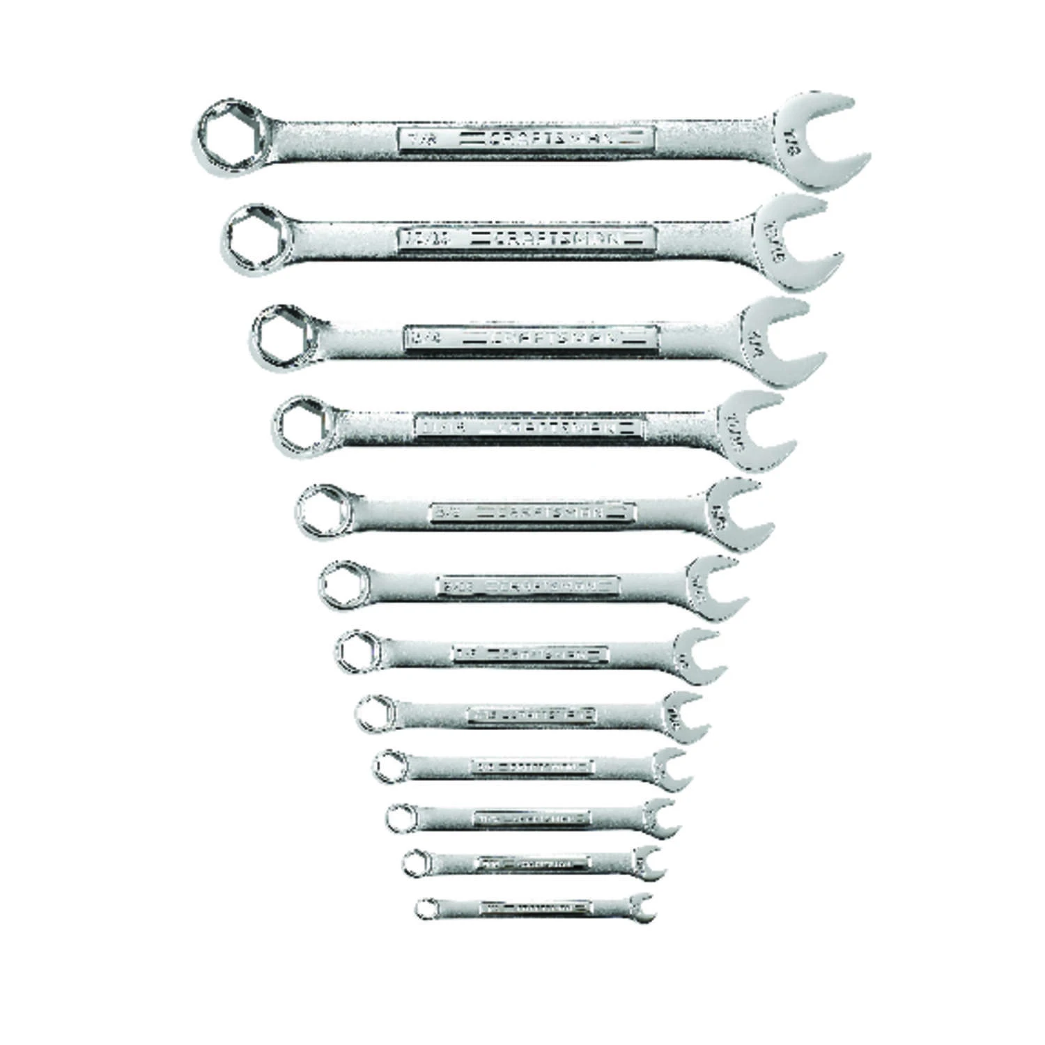 Whether you’re keeping your on-the-road tool box stocked or building up your DIY supplies, the Craftsman. Standard 6 point combination wrench set is a crucial set of tools. With an offset beam for knuckle clearance and chamfered open ends for safety and reduced wear, these Craftsman standard wrenches will last a long time in your tool box. Low profile for knuckle clearance Chamfered ends for safety and reduced wear 3.93 lbs. weight Silver color Made of alloy steel