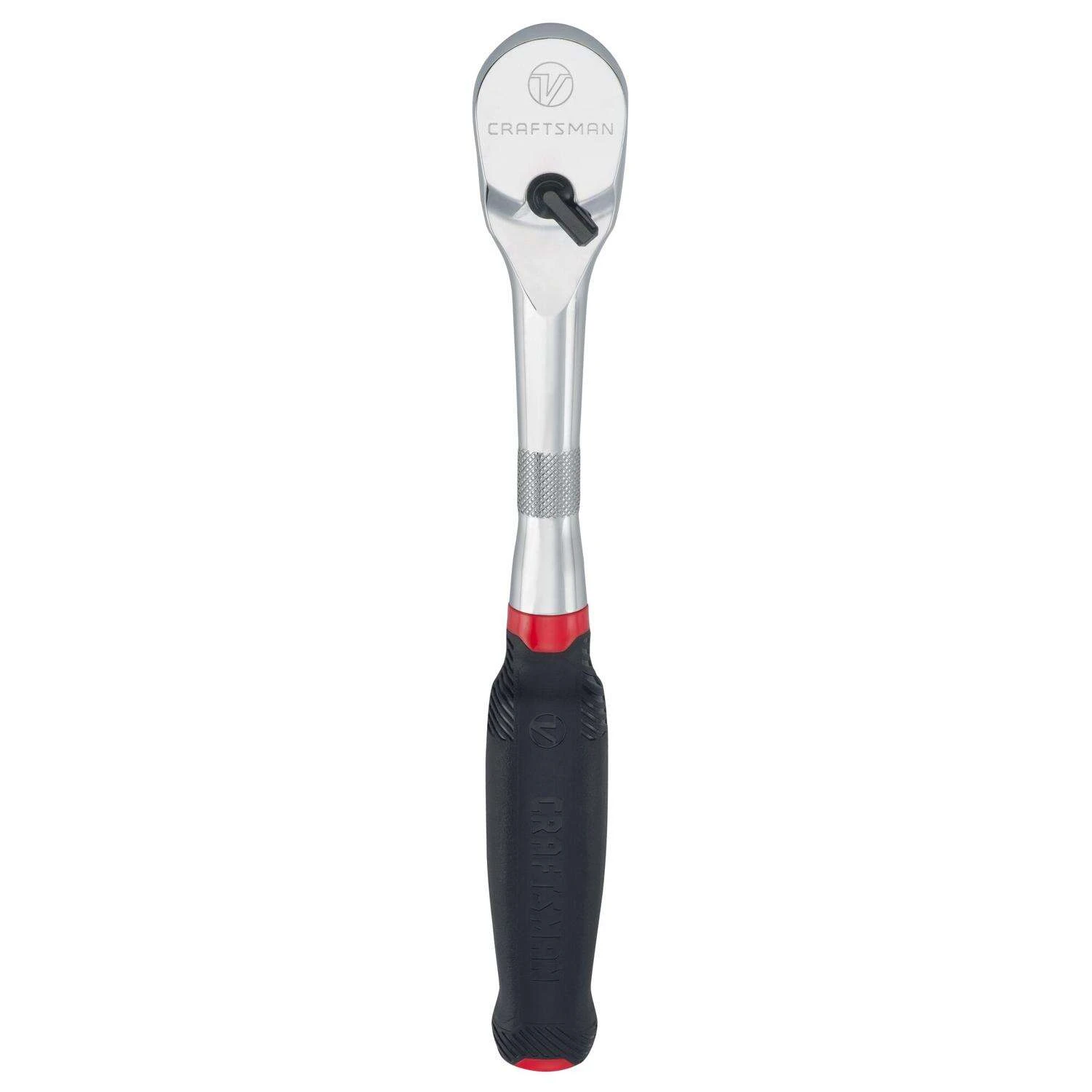 Tackle demanding fastening projects and finish with pride with the V-Series™ 1/2 in. Drive Comfort Grip Ratchet. Manufactured specifically for professionals, this ratchet delivers consistent high performance with a precision-engineered gear for enhanced tool longevity and endurance. Without sacrificing strength, easily access confined spaces with its 96-tooth design and 3-3/4 arc swing that optimizes usability. ACCESS CONFINED SPACES with 3-3/4 deg arc swing MAINTAIN PRODUCTIVITY with a 180 deg Articulating Head that helps you grip hard-to-reach fasteners COMFORTABLE GRIP: Bi-material handle lessens hand strain BUILT FOR STRENGTH AND DURABILITY with precision-engineered gears PREVENTS DAMAGE FROM DIRT infiltration with enclosed head design BACKED BY A LIFETIME WARRANTY: Designed to deliver the quality and durability expected from the CRAFTSMAN brand – if the product fails to perform, we’ll replace it