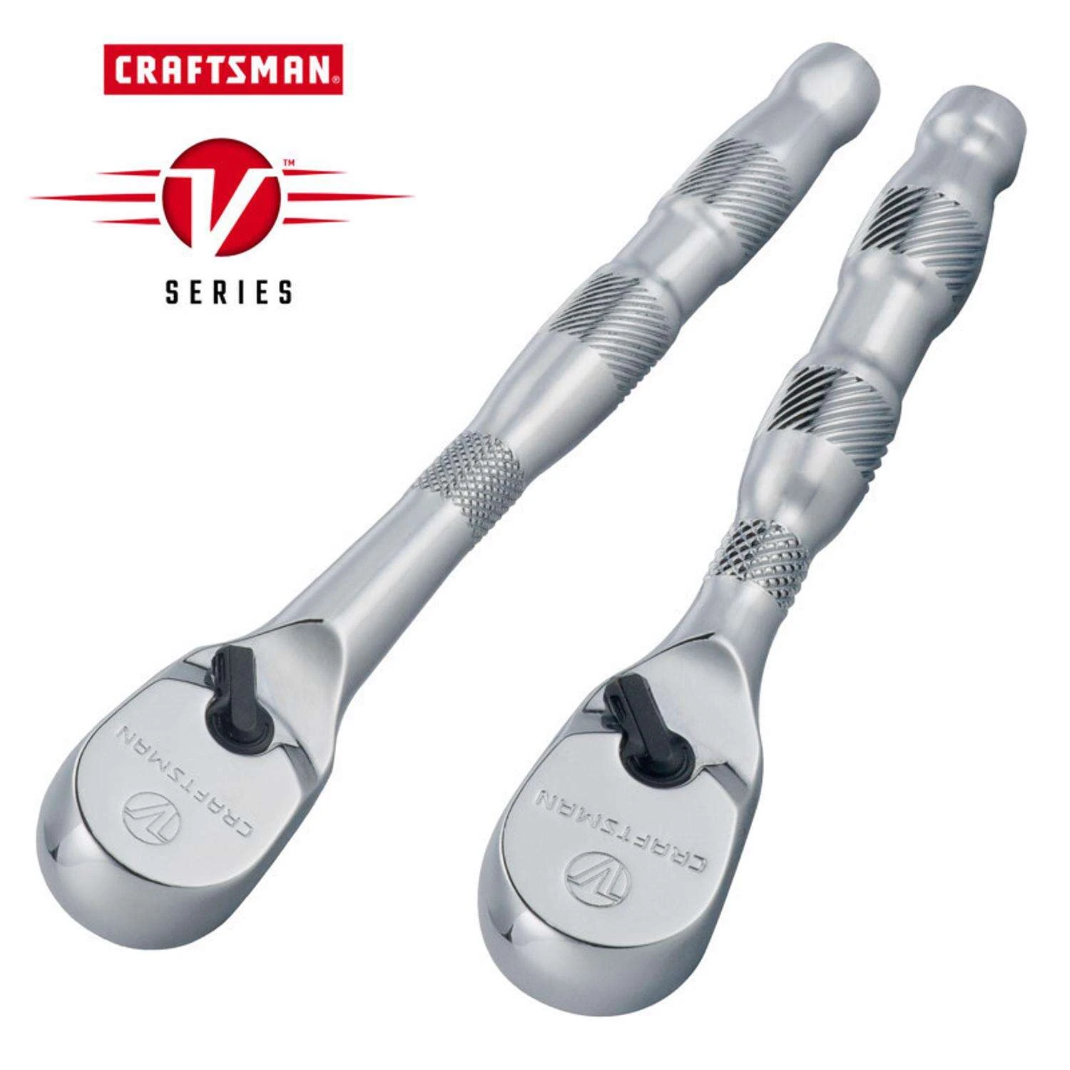 Take on any job that comes your way with the V-Series™ 1/4 in. and 3/8 in. Drive Ratchet. This set delivers the consistent performance professionals need with precision-engineered gears that provide users with improved tool life and durability. Maintain productivity in the tightest of spaces without sacrificing grip strength with these ratchets’ 80-tooth and 96-tooth designs and short respective 4-1/2 and 3-3/4 arc swings. ACCESS CONFINED SPACES: 3/8 in. ratchet has 3-3/4 arc swing and 1/4 in. ratchet has 4-1/2° arc swing PREVENT UNINTENTIONAL SWITCHING with low-profile steering lever BUILT FOR STRENGTH AND DURABILITY with precision-engineered gears PREVENTS DAMAGE FROM DIRT infiltration with enclosed head design BACKED BY A LIFETIME WARRANTY: Designed to deliver the quality and durability expected from the CRAFTSMAN brand – if the product fails to perform, we’ll replace it