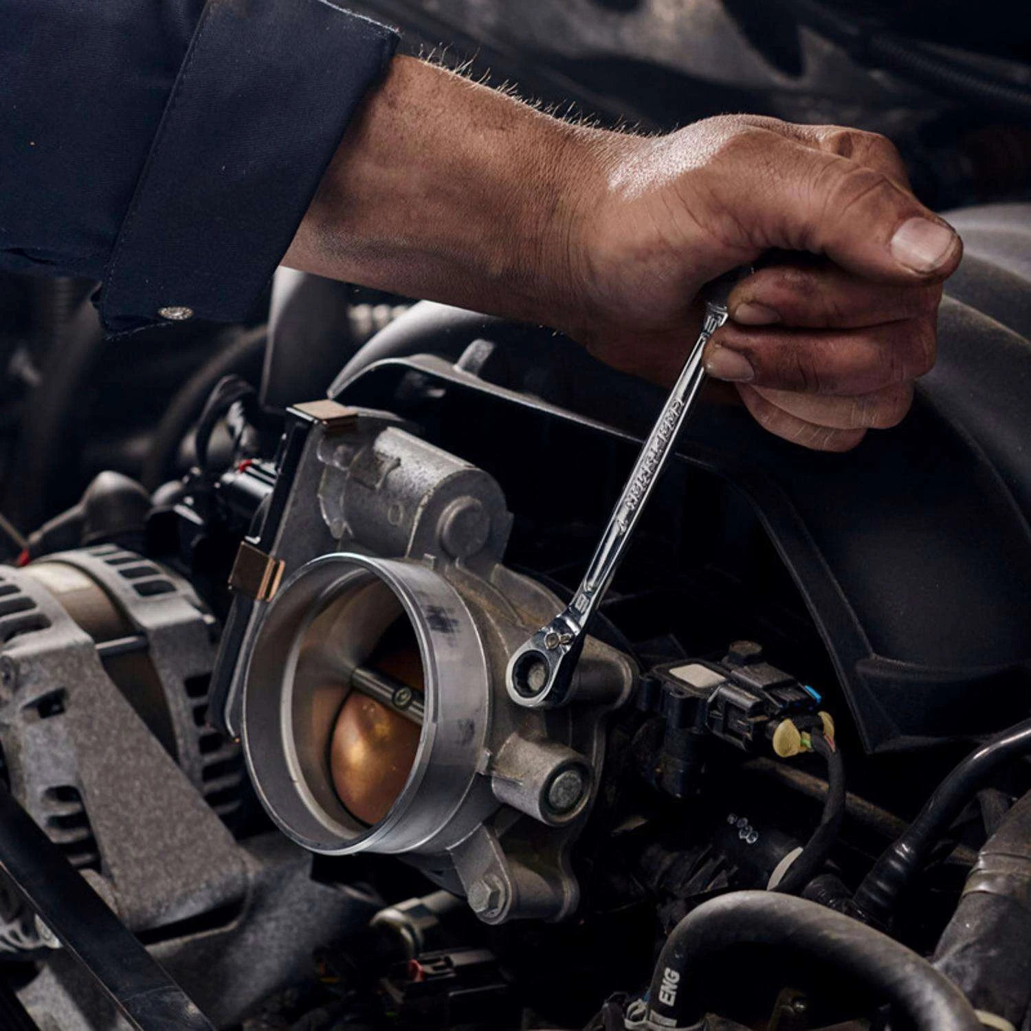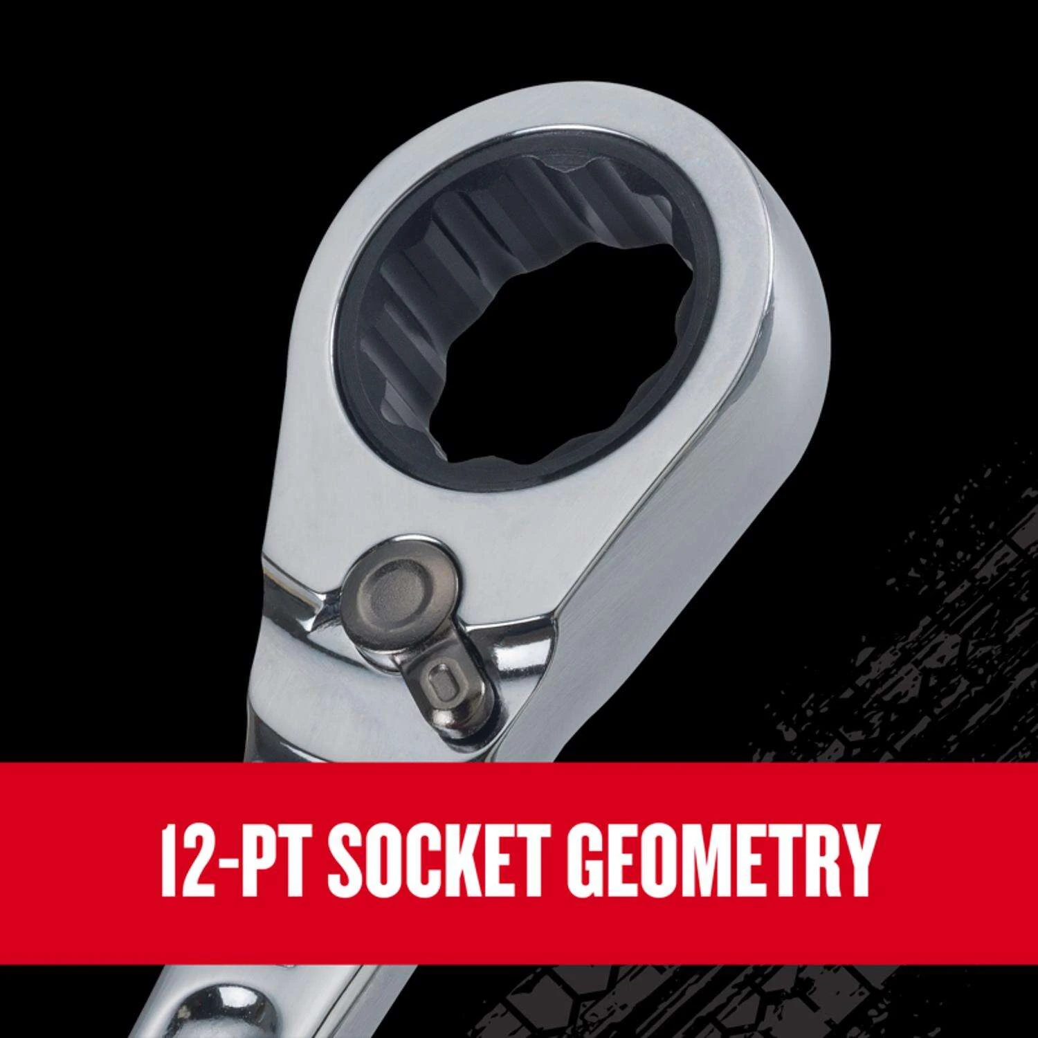 Quick, durable, and reliable ratcheting solutions are always on hand when you own the V-Series™ Metric Reversible Ratcheting Combination Wrench Set. Engineered for professionals, these wrenches feature a durable 72-tooth design on the box end. The handle’s lightweight I-beam design enhances control during use while sustaining optimal strength. The low-profile design enables access in tight spaces without damaging fasteners in high torque applications. The vertical wrench rack is designed to fit in most metal storage drawers, providing users with an organized method to store their wrenches. ACCESS TIGHT SPACES: 5° arc swing QUICK FASTENER ENGAGEMENT: 12-point box end design KEEP HANDS SAFE: 15° offset for knuckle clearance BACKED BY A LIFETIME WARRANTY: Designed to deliver the quality and durability expected from the CRAFTSMAN brand – if the product fails to perform, we’ll replace it