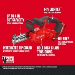 Craftsman V20 BRUSHLESS RP CMCCS630P1 12 In. 20 V Battery Chainsaw Kit (Battery & Charger)